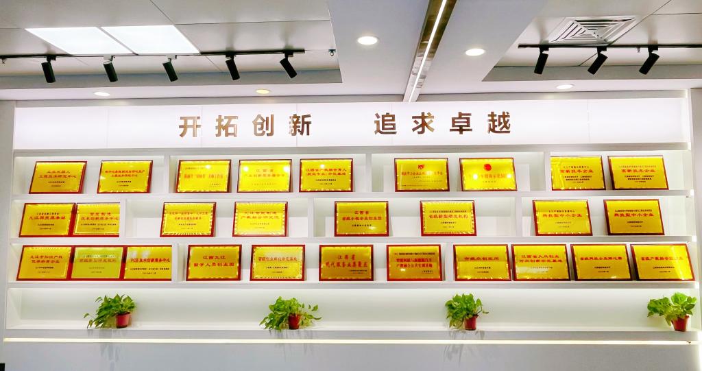 目前,公司批准认定为高新技术企业、首批省级新型研发机构、科技型中小企业、首批省级产教融合型企业、省级创新型中小企业、九江市知识产权优势培育企业、市级产业研究院等荣誉称号12项;获批建设省级博士后创新实践基地、省级大学科技园、省级科技企业孵化器、省级创业孵化示范基地等创新创业服务平台6个;建设2个市级工程技术研究中心、2个九江经开区特色载体;研发团队建设省级职业院校校企合作“双师型”名师工作室、入选市“双百双千”人才工程创新创业团队(创新类)、市“浔城英才”计划首批培育类青年拔尖人才;牵头成立“九江市科技服务行业协会”,并当选会长单位;成立“江西省机械工程学会九江科技服务站”;参与共建“江西省智能制造产业技术研究院”、参与发起“九江市智能制造产业协会”。